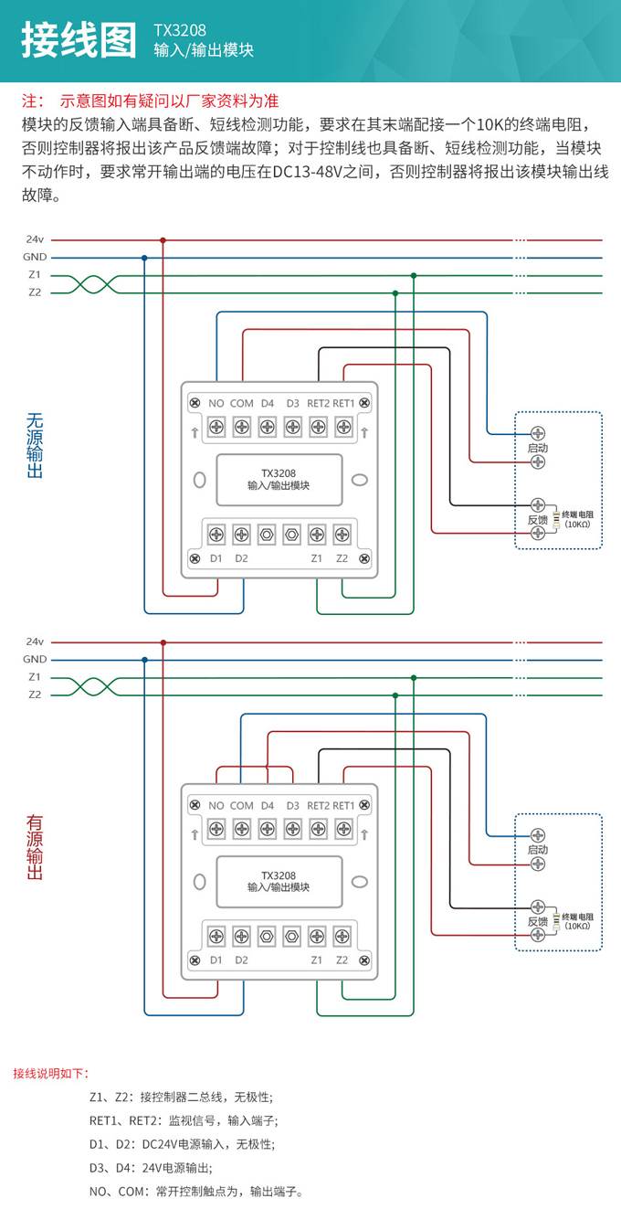 泰和安TX3208輸入輸出模塊接線圖